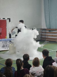 4 listopada uczniowie SP Obrowo wzięli udział w niecodziennych pokazach naukowych. W programie znalazły się interesujące eksperymenty związane z bezwładnością, mechaniką płynów oraz właściwościami fizyko-chemicznymi gazów. Prowadzącemu udało się w szczególny sposób połączyć elementy humorystyczne z edukacyjnymi zachęcając naszych uczniów do wspólnego, bezpiecznego eksperymentowania.