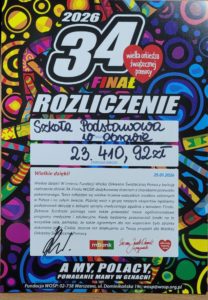 Społeczność Szkoły Podstawowej im. Jana Pawła II w Obrowie po raz kolejny włączyła się w Wielką Orkiestrę Świątecznej Pomocy. Dzieci, rodziców, mieszkańców gminy i gości czekała moc atrakcji, w tym kulig, występy taneczne, słodka kawiarenka i licytacje.